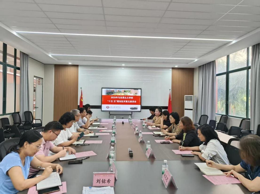 2025年10月16日下午,广州华商学院马克思主义学院在广州校区创新楼315会议室组织召开学院“十五·五”规划征求意见座谈会。会议由马克思主义学院院长杨明教授主持,学校党委书记陈玉欢、副校长许娜出席,党委宣传部、人事处、科研处、招生办、后勤后卫处、产教融合办、工会等相关职能部门负责人参加座谈会。