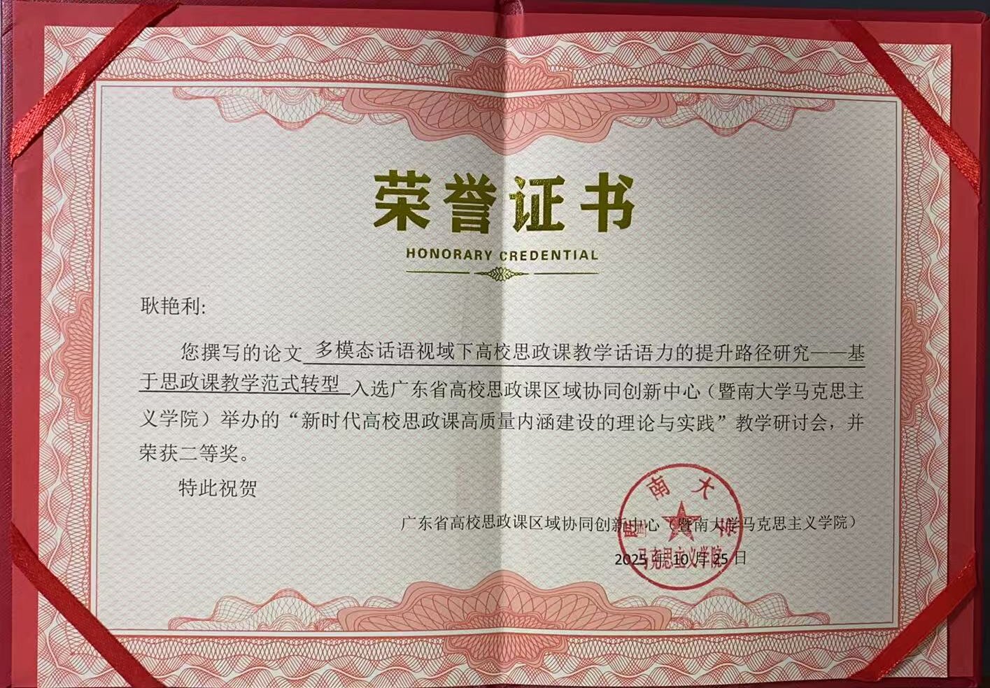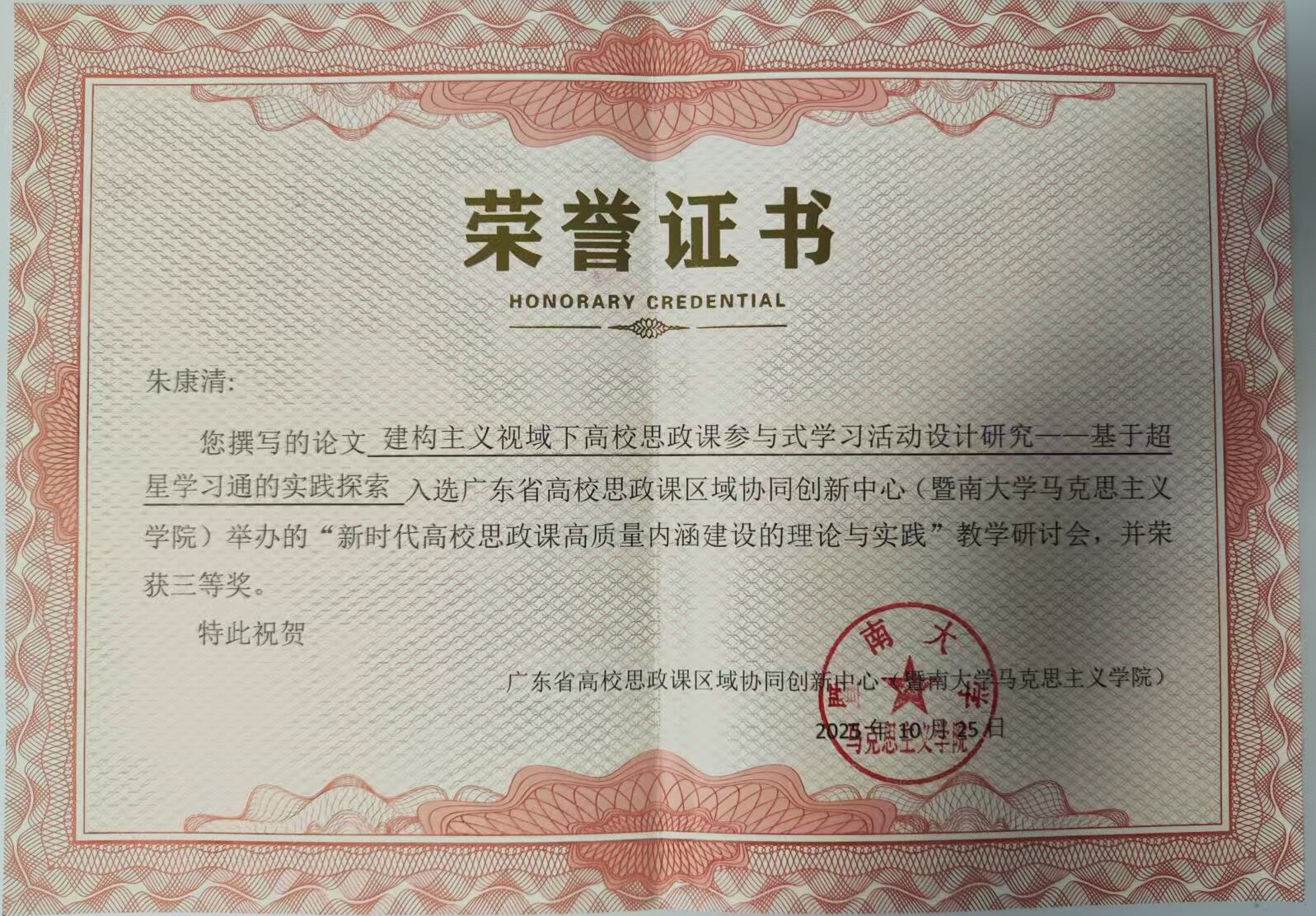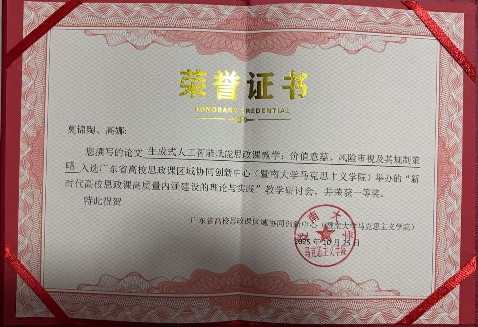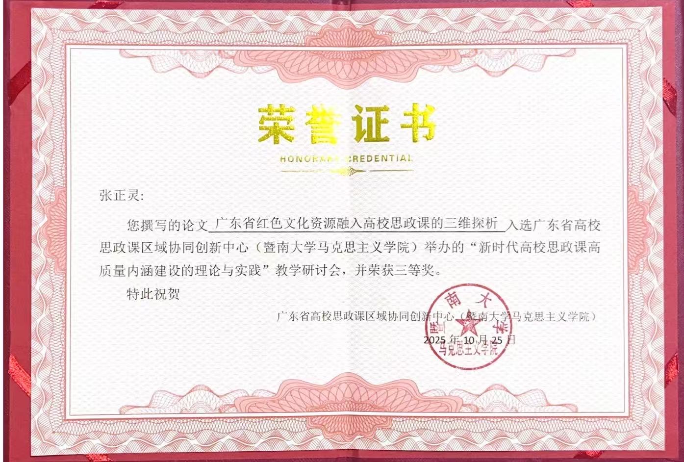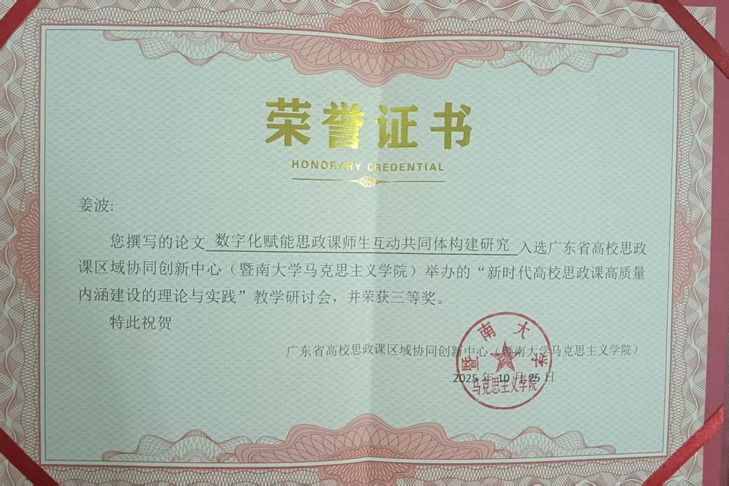 下一条:马克思主义学院“课程启智·实践润心·文化铸魂:三维协同的思政育人体系探索”成果获广东省教育评估协会第六届教育教学成果(高等教育)质量评定一等奖