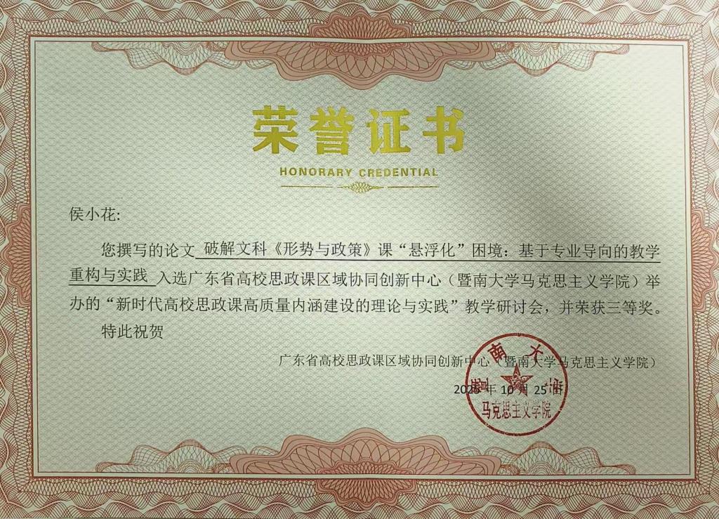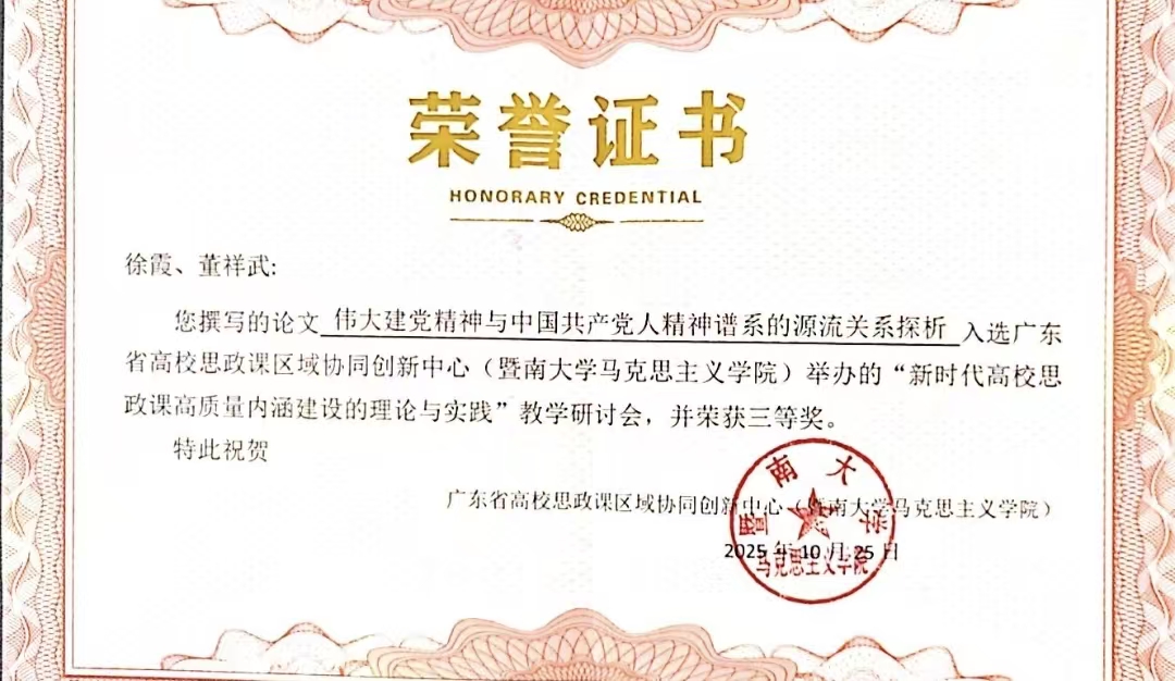 上一条:马克思主义学院五名教师获得第三届广东民办高校马克思主义研究与教学学术论文征集及评选活动征文奖